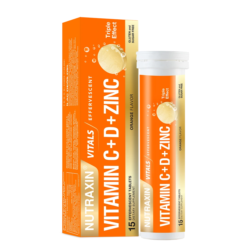 Nutraxin Efervesan Vitamin C+D+ ZINC; içeriğinde bulunan C vitamini , D vitamini ve çinko ile üç güçlü bileşeni bir arada sunmaktadır. Efervesan formda olup, portakal aromalıdır.